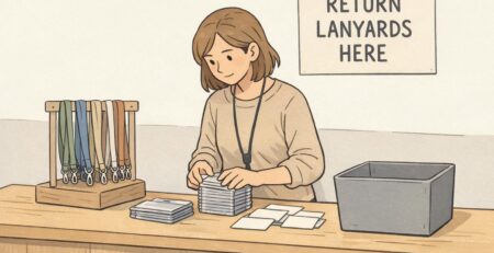 After the test print, do a quick wear test. Put the badge in the actual holder. Attach it using the intended clip or lanyard. Then check whether the holder edge, slot, or clip covers key details like first name, role, or a QR code. Look at it under typical indoor lighting and from normal conversation distance.