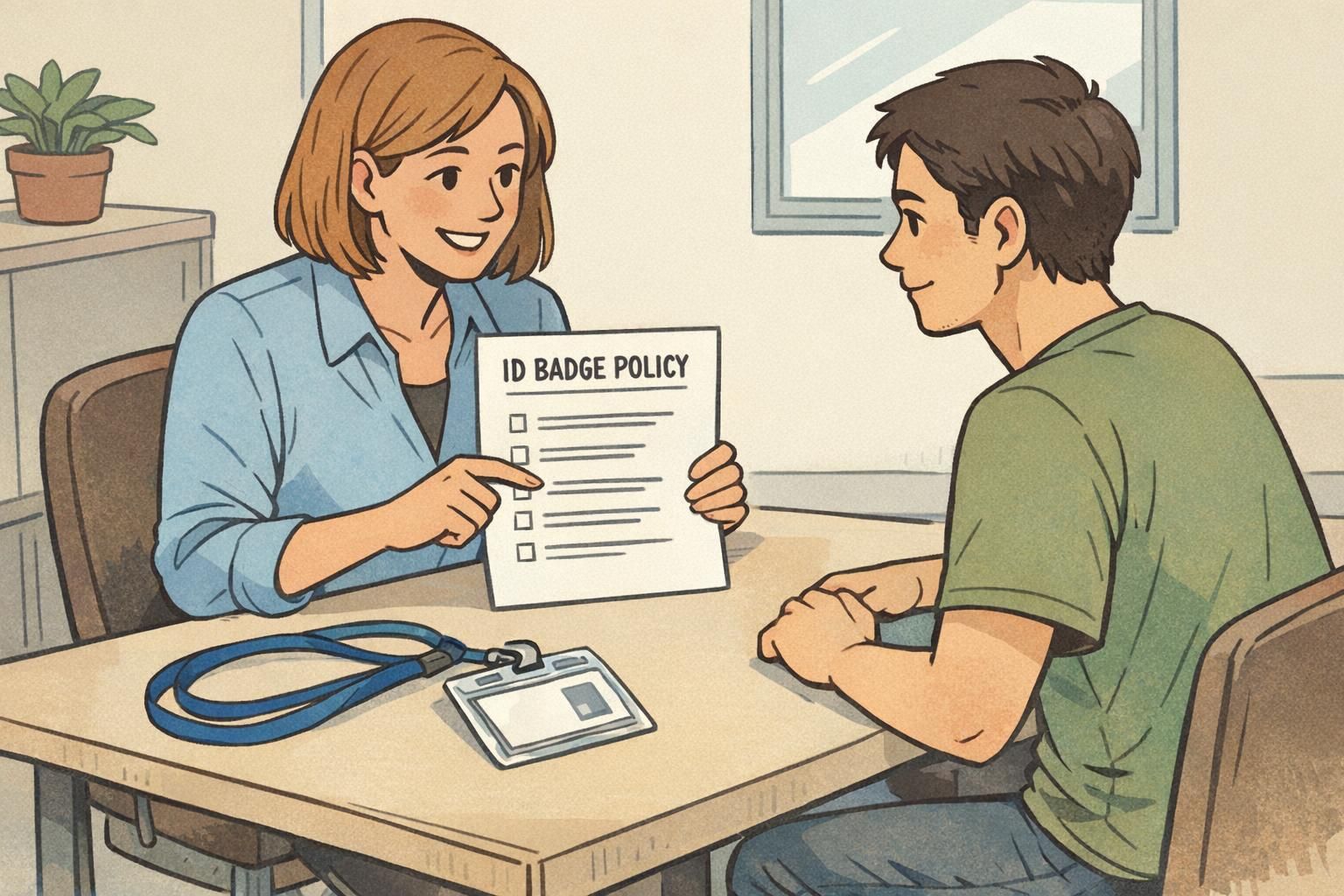 - Add a short badge check to your new-hire checklist (issue badge, confirm photo/name, show where it must be worn).